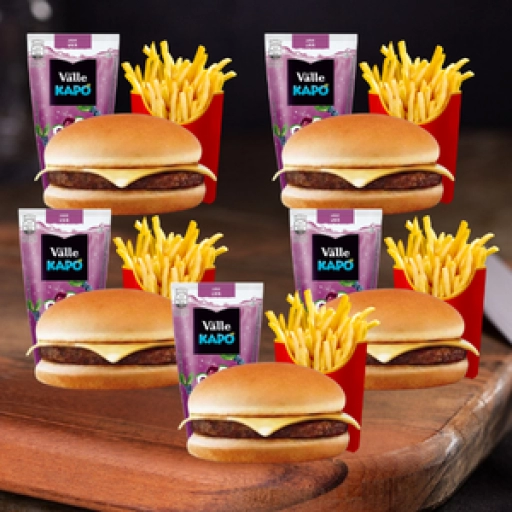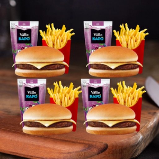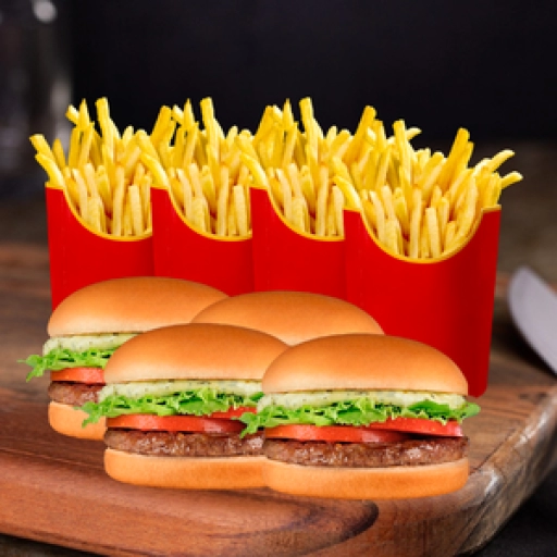 1 X Salada + 1 XEgg Burguer + 1 X Tudo + 1 X Bacon + 4 Fritas de 130g + Refrigerante de 2 Lts