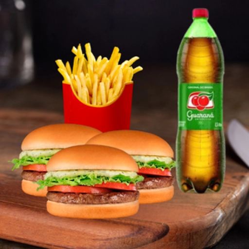 3 X Burguer + 3 Fritas + Refri de 1,5lts