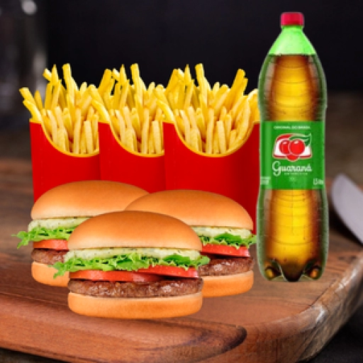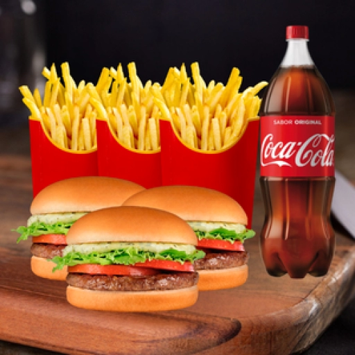 Combo Familia 3 X Burguer + 3 Fritas + Refri 1,5Lts