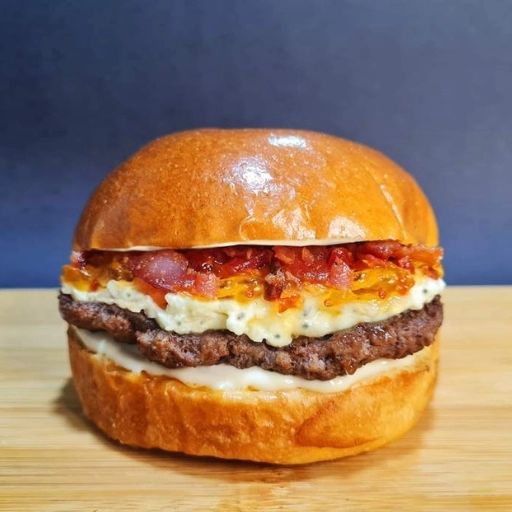 Pão especial, 3 x hamburguer picanha 140g, 1 x queijo mussarela , 2 x queijo cheddar fatiado